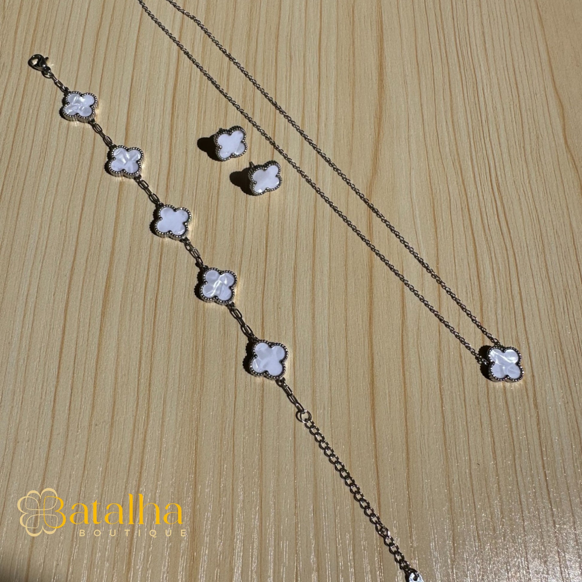 Clover Set- Plata elegante y versátil diseñado para realzar cualquier look con un brillo sutil.